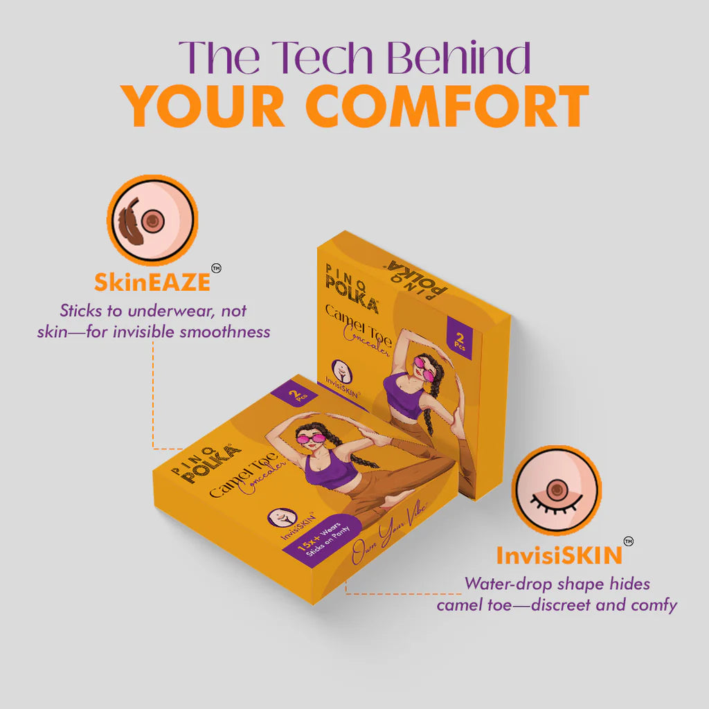 • The Camel Toe Concealer discreetly eliminates visible lines with InvisiSKIN™ technology and a soft, water-drop design that fits naturally in the crotch area. It sticks to your undergarments, not your skin—making it irritation-free, reusable, and invisible under tight outfits.