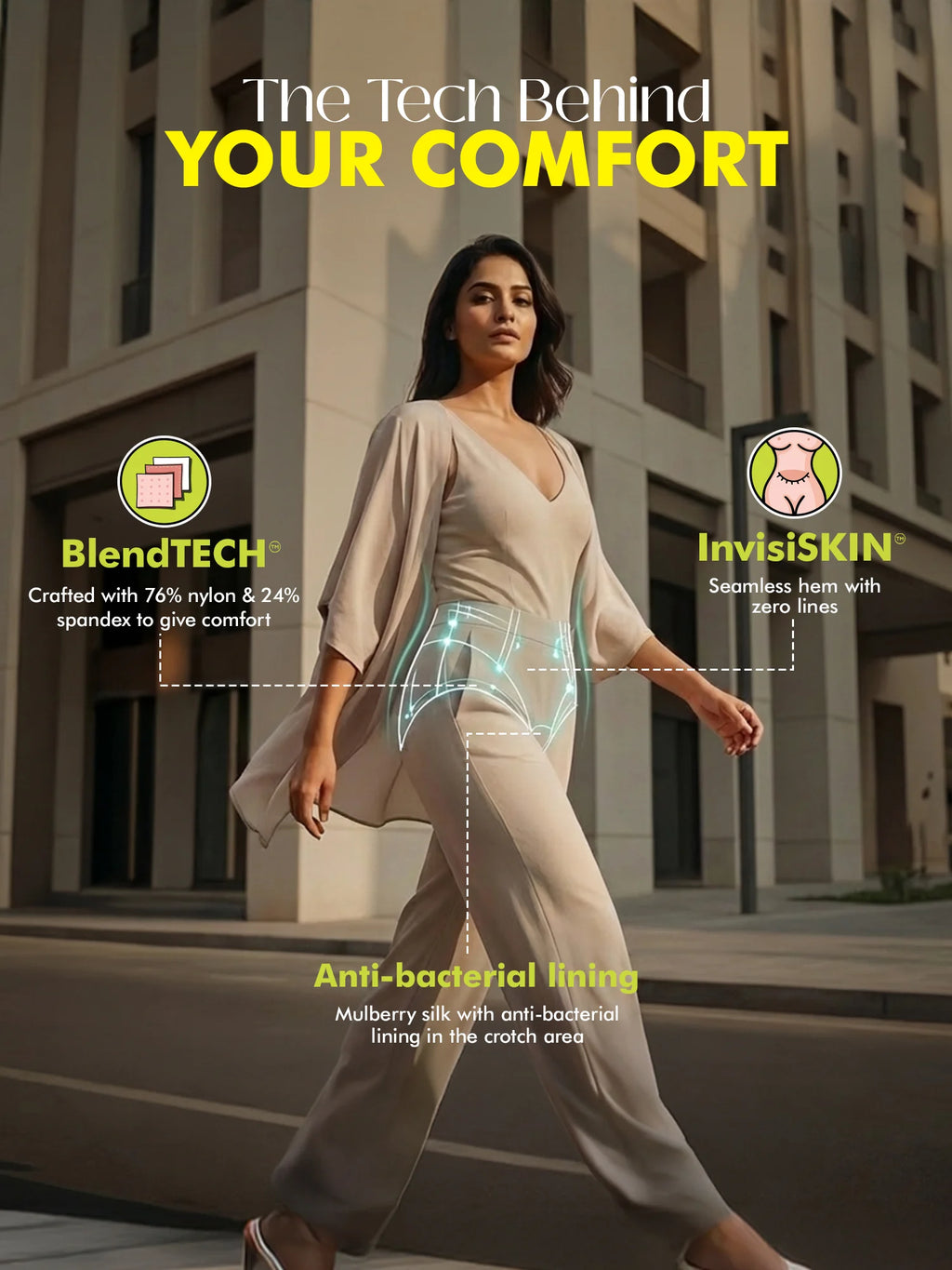 For shaping that feels natural, ShapeSYNC™ provides targeted tummy control that adapts seamlessly—no stiffness, no tightness, just gentle little compression with natural shaping. It delivers enhanced shape and superior comfort all day long. Stay fresh and comfortable all day with the Mulberry silk with anti-bacterial lining in the crotch area. Move freely with the 4-way stretch mechanism, giving you full flexibility and a contoured, body-hugging fit for all-day ease.